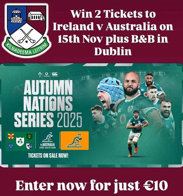 Kilnadeema Leitrim GAA are excited to offer you the opportunity to witness Ireland take on Australia in the 2025 Autumn Internationals!!
